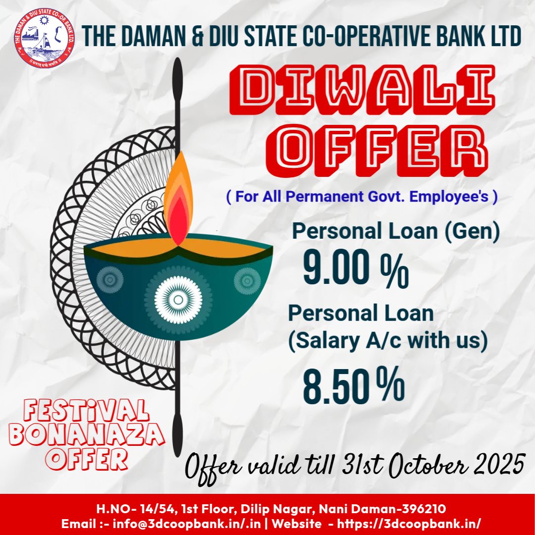 The Daman & Diu State Cooperative Bank Limited., (DDSCB) Head Office, Nani Daman has been carved out of the Goa State Cooperative Bank Ltd., Panaji with effect from 01st April 2017. The area of operation of the bank covers the entire Union Territory of Dadra & Nagar Haveli and Daman & Diu. The bank has 5 Branches in Daman Region and 4 branches and 1 Regional Office in Diu Region. The bank does not have affiliated DCCBs and PACS in its area of operation